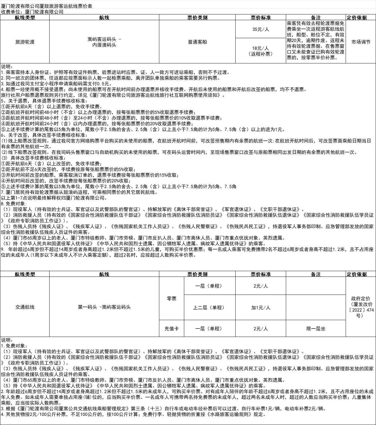 嵩嶼客運(yùn)碼頭往返鼓浪嶼內(nèi)厝澳碼頭