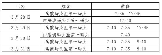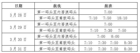 受潮汐影響,2021年3月28日至3月31日(共4天)第一碼頭往返內(nèi)厝澳碼頭航線和第一碼頭往返嵩鼓碼頭航線的部分航班將取消或改靠至廈門輪渡碼頭,具體安排如下: