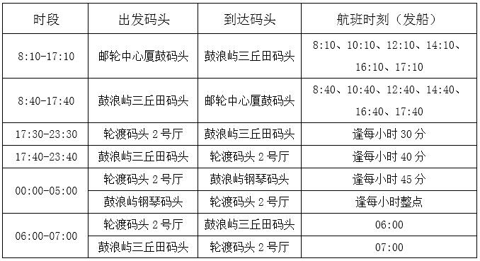2022年3月16日起,我司將調(diào)整部分游客日間進(jìn)出島航班,繼續(xù)暫停郵輪中心廈鼓碼頭至鼓浪嶼內(nèi)厝澳碼頭航線。調(diào)整后,各航線進(jìn)出島航班安排具體如下: