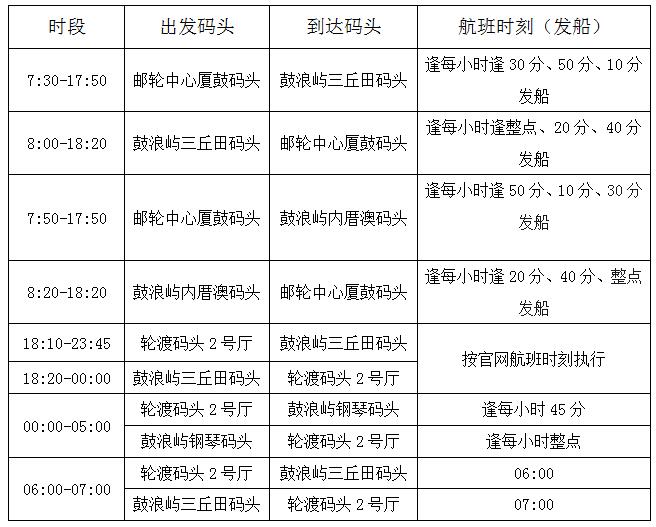 2022年7月3日起,我司恢復(fù)郵輪中心廈鼓碼頭至鼓浪嶼內(nèi)厝澳碼頭航線7:50-17:50時(shí)段的航班。調(diào)整后,各航線進(jìn)出島航班安排具體如下: