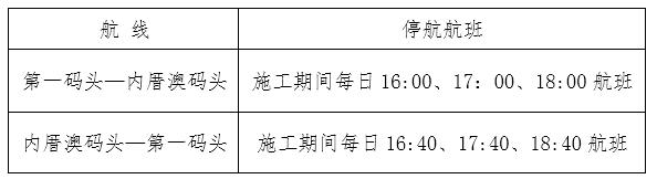 為提升碼頭承載能力和服務(wù)質(zhì)量,鼓浪嶼內(nèi)厝澳碼頭將于2022年9月16日至9月18日進(jìn)行擴(kuò)建工程躉船安裝施工。受此影響,施工期間,第一碼頭往返鼓浪嶼內(nèi)厝澳碼頭市民航線部分航班將暫停運(yùn)營,具體如下: